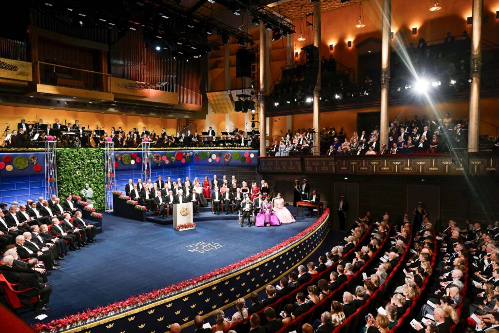 Лауреаты и королевская семья Швеции на церемонии вручения Нобелевской премии в Стокгольме, 2022 год