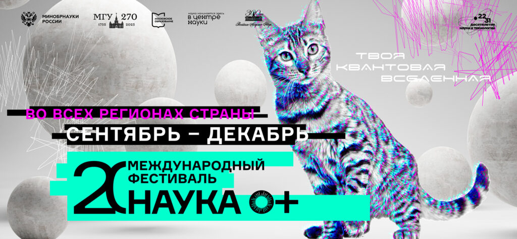 Церемонию открытия фестиваля в Фундаментальной библиотеке МГУ украсил иммерсивный спектакль «Твоя квантовая реальность» с живой музыкой, визуальными проекциями, акробатическими номерами и номером «Балет кота Шредингера». Кот Шредингера — ​один из символов «Науки 0+». Там же, в Фундаментальной библиотеке МГУ, в зале выставки «От кремня до кубита: путь человечества» стоял ящик с LED-панелями. Поднимаешь крышку — ​на экранах возникает кот, но не в двух состояниях, как в эксперименте Шредингера. Кот то играет со своим отражением, то пытается выбраться наружу, то дремлет и т. д. В разделе «Прорыв в мир атома и кванта» можно было изучить принципы ядерной и термоядерной энергетики на моделях реакторов БРЕСТ и ИТЭР. В разделе «Мегасайенс и покорение пространства­времени» — ​узнать, как работают коллайдер NICA и фабрика сверхтяжелых элементов в Объединенном институте ядерных исследований в Дубне, нейтринный телескоп Baikal­GVD, новосибирский синхротрон СКИФ и проч. Один стенд был точной копией фармацевтической лаборатории, в которой посетители пробовали себя в роли исследователей.