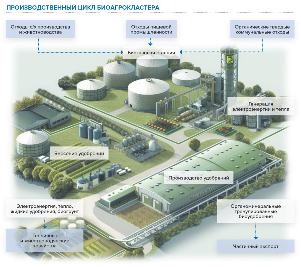 Биогазовая станция мощностью 2,4 МВт строится весьма быстро — около года, и ежегодно дает до 17,8 млн кВт·ч электроэнергии и до 10 тыс. т органоминеральных биоудобрений. Важно, что к настоящему времени мы обеспечили 90 %-ю локализацию технологий и опираемся на серийное отечественное оборудование и комплектующие. Остальные 10 % поставляют дружественные страны.