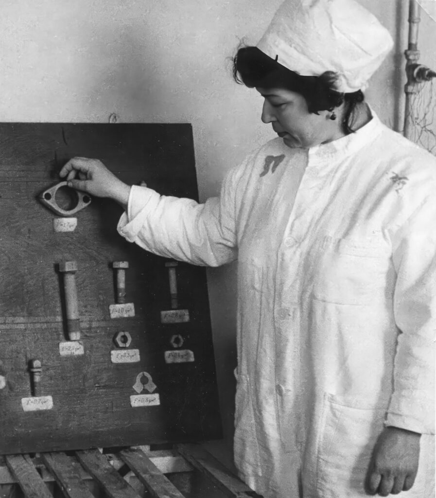 Со временем у завода радиоактивных изотопов появилось собственное здание, в котором оборудовали лабораторию. «Рядом с нами располагалась почти достроенная высокая труба комбината. Нам, четверым молодым сотрудникам лаборатории, она покоя не давала, — смеется Зинаида Матющенко. — Решив посмотреть на Челябинск‑40 с высоты птичьего полета, мы вскарабкались на самый верх по внутренней винтовой лестнице. Открылась такая красотища! И вся округа, и Карачай как на ладони. Когда спускались вниз, радости поубавилось. Там стояли старшие товарищи и, задрав головы, крутили пальцем у виска. Здорово нам влетело от начальника смены».