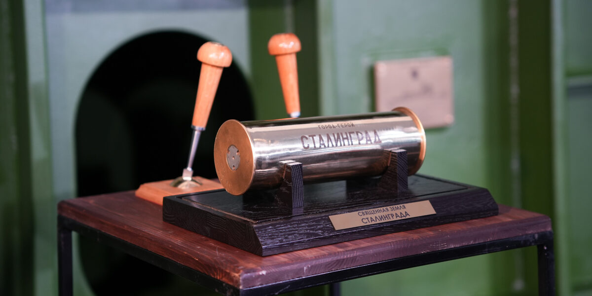 Участник Сталинградской битвы Павел Винокуров (в ноябре ему исполнится 103 года) передал Алексею Лихачеву капсулу с землей Мамаева кургана. Она будет храниться на ледоколе.