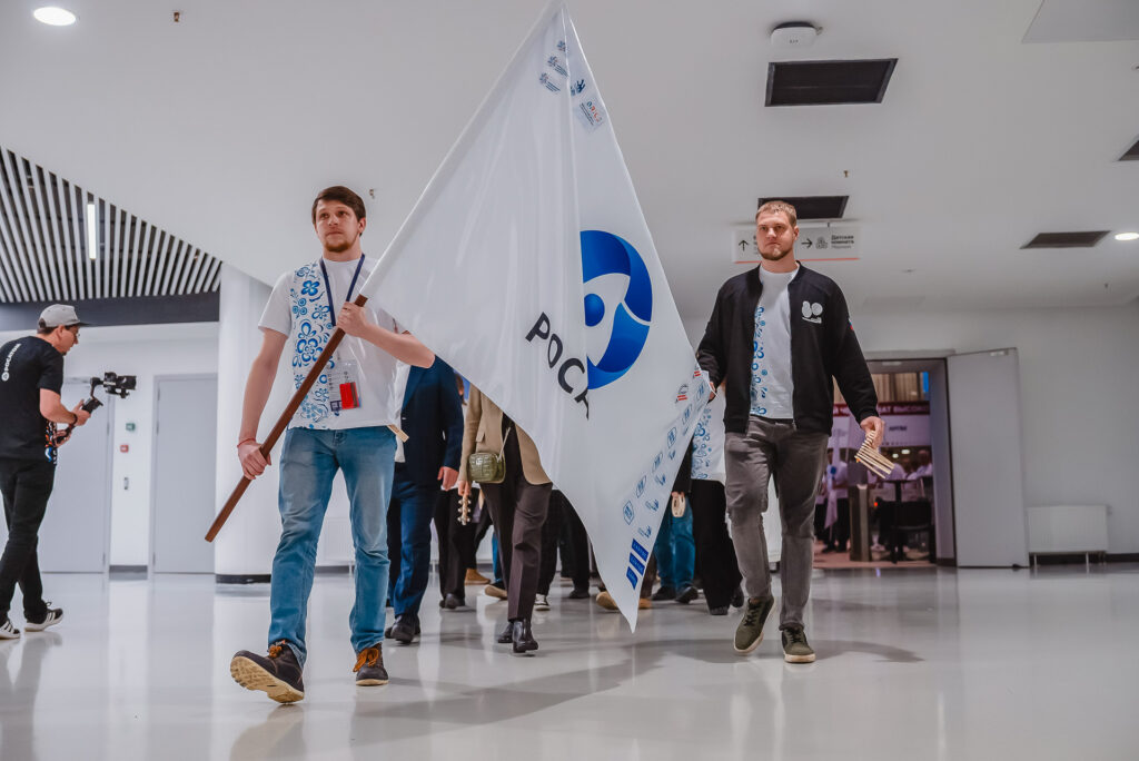 Колонну возглавлял капитан сборной Данил Слободян, электромонтер по ремонту аппаратуры релейной защиты и автоматики Уральского электрохимического комбината. Он нес флаг и выпустил его из рук лишь однажды — ​когда поднимался на сцену за золотом в компетенции «Промышленная автоматика». «Это мой первый «Хайтек», и капитанские полномочия достались мне случайно, — ​говорит Данил Слободян. — ​Я был заместителем, но наш капитан приболел, и мне пришлось его подменить. Я верил, что золото в «Промышленной автоматике» заберет «Росатом».