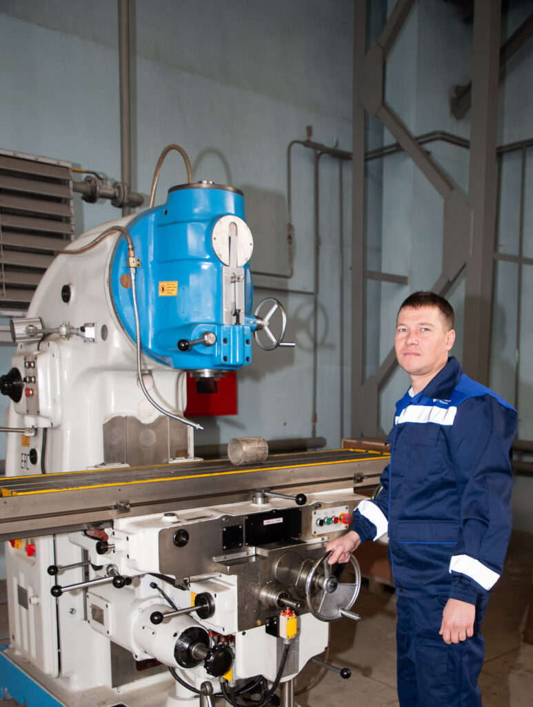 Фрезеровщик ОКБМ Александр Петров у своего станка