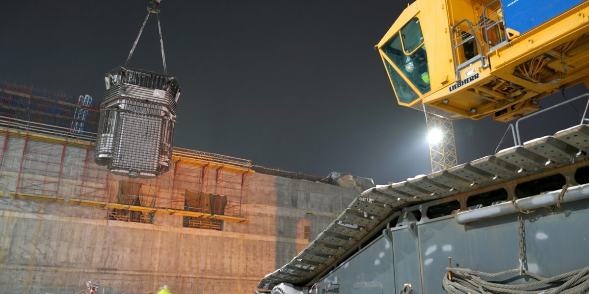 На стройплощадке опытно-демонстрационного энергокомплекса IV поколения начали устанавливать металлические оболочки периферийной полости в шахту реактора.