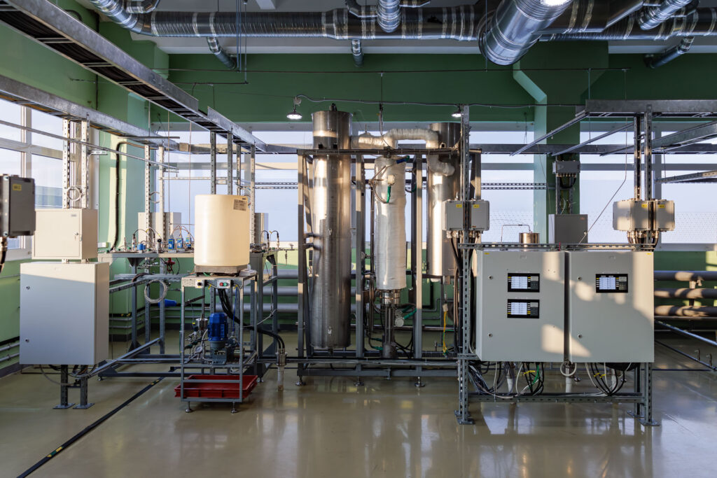 На стенде испытывают критически важные компоненты установки, катализаторы и технологические процессы; на больших, чем в лаборатории, масштабах проверяют математические модели оборудования и техпроцессов.