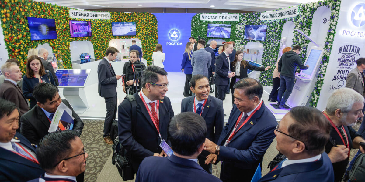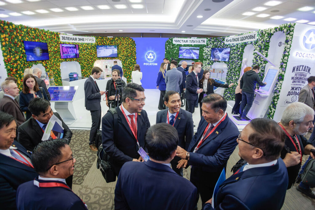 В блоке «Здоровье человека» представили трехмерную модель циклотрона для производства медицинских изотопов, который разрабатывает НИИ электрофизической аппаратуры им. Ефремова в партнерстве с компанией «Росатом РДС». «Это первое российское решение, сконструированное для медицинского применения в содружестве с организациями Минздрава, — сообщил Никита Иванов, руководитель проекта компании «Росатом РДС». — До 2030 года мы планируем поставить несколько циклотронов в региональные клиники». Кроме того, на оборудовании сети клиник «Медскан» (входит в «Росатом») посетители могли пройти экспресс-оценку нервной и сердечно-сосудистой систем, состава тела, когнитивных функций, а также «полечить» интерактивный манекен радионуклидами.