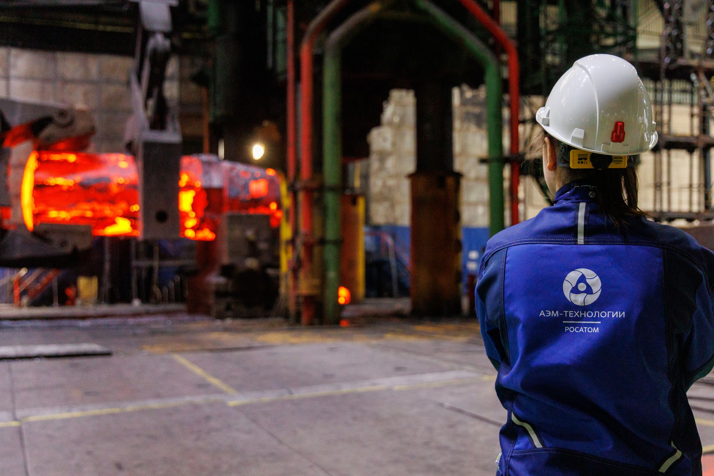 Специальную сталь для атомных реакторов сначала выплавляют в сверхмощной дуговой сталеплавильной печи вместимостью до 120 т. После того как металл проходит внепечную обработку и выдерживается в специальной вакуумной камере, чтобы дать жидкому сплаву кристаллизоваться и немного остыть, слиток отправляют на ковку.