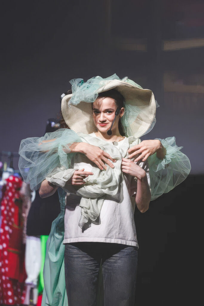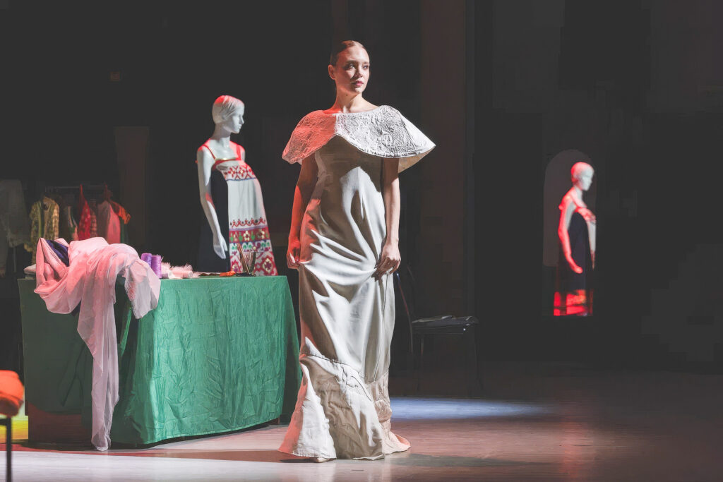 17 марта сцена городского центра досуга в Десногорске превратилась в машину времени. Зрители отправились в путешествие сквозь столетие: от авангардных 1920‑х до современных 2020‑х. Режиссер-постановщик Алексей Фроленков, известный работами в Театре на Малой Бронной, придумал спектакль, где переплелись драма, история костюма и философия стиля. Три героя — Модельер, его Ассистентка и оживший манекен по имени Мода, — путешествуя по разным эпохам, шьют платье для таинственной заказчицы и параллельно ведут диалог со зрителем о том, как исторические события формировали стиль: от милитари 1920‑х и нового взгляда 1950‑х до эстетики Олимпиады‑80, силуэтов 1990‑х и минимализма 2020‑х.