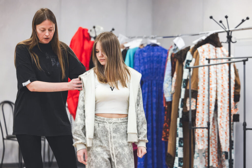 Сразу после лекции эксперт кафедры искусства костюма и моды Российского государственного университета им. Косыгина, член Союза дизайнеров России Алена Коробкова провела мастер-класс по основам дефиле. Юные модели учились держать спину, работать с камерой, носить сложные костюмы. Для многих это была первая встреча с профессиональными требованиями модельного бизнеса.