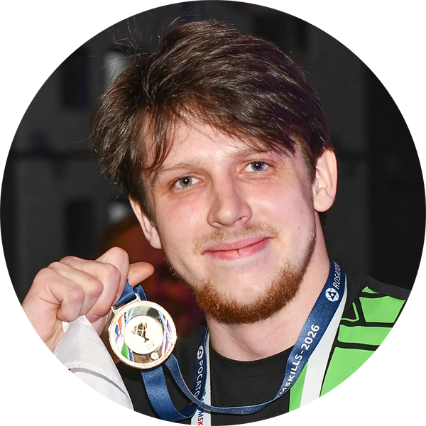 Данил Слободян пришел на Уральский электрохимический комбинат еще студентом и быстро влился в чемпионатное движение. Тогда студенческой лиги не было — начал сразу с основной. Сегодня у него за плечами пять AtomSkills и золотая медаль «Хайтека-2025». В этом году Данил Слободян выступал экспертом и вместе с Андреем Булавиновым с Сибирского химкомбината получил золото в компетенции «Промышленная автоматика». Теперь комплект наград AtomSkills полный, серебро и бронза уже были. «Но каждый раз, когда объявляют мою фамилию, ушам не верю: а точно меня назвали? Эмоции настолько переполняют, что победу осознаешь только на следующее утро», — признается чемпион.