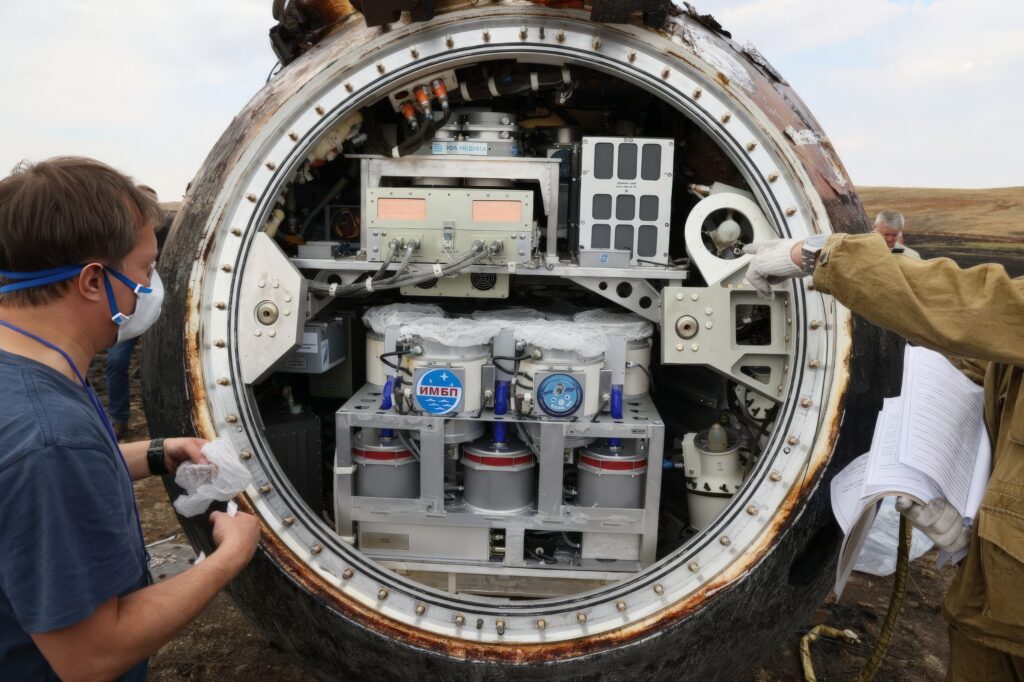 На борту также тестировались технологии для автономных миссий, а именно — микробные топливные элементы. Биологические батареи, в которых анодная камера с бактериальной культурой генерирует разность потенциалов до 0,7 В на ячейку, — надежный, хотя и маломощный источник энергии для долговременных экспедиций. В другом эксперименте изучалась способность термофильных клостридий перерабатывать отходы из хлопка, например марлю. У метода двухстадийная декомпозиция: сначала твердая масса превращается в жидкость, а затем продукты разложения очищаются до состояния так называемой серой воды, пригодной для полива орбитальных оранжерей. Эта технология переработки критически важна в длительных полетах, например к Марсу, когда нет возможности отправлять мусор на Землю в грузовых кораблях.